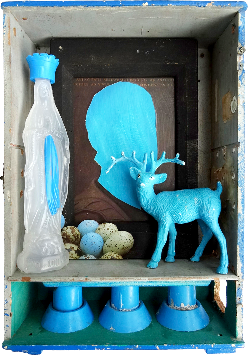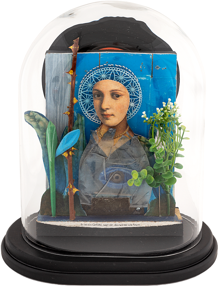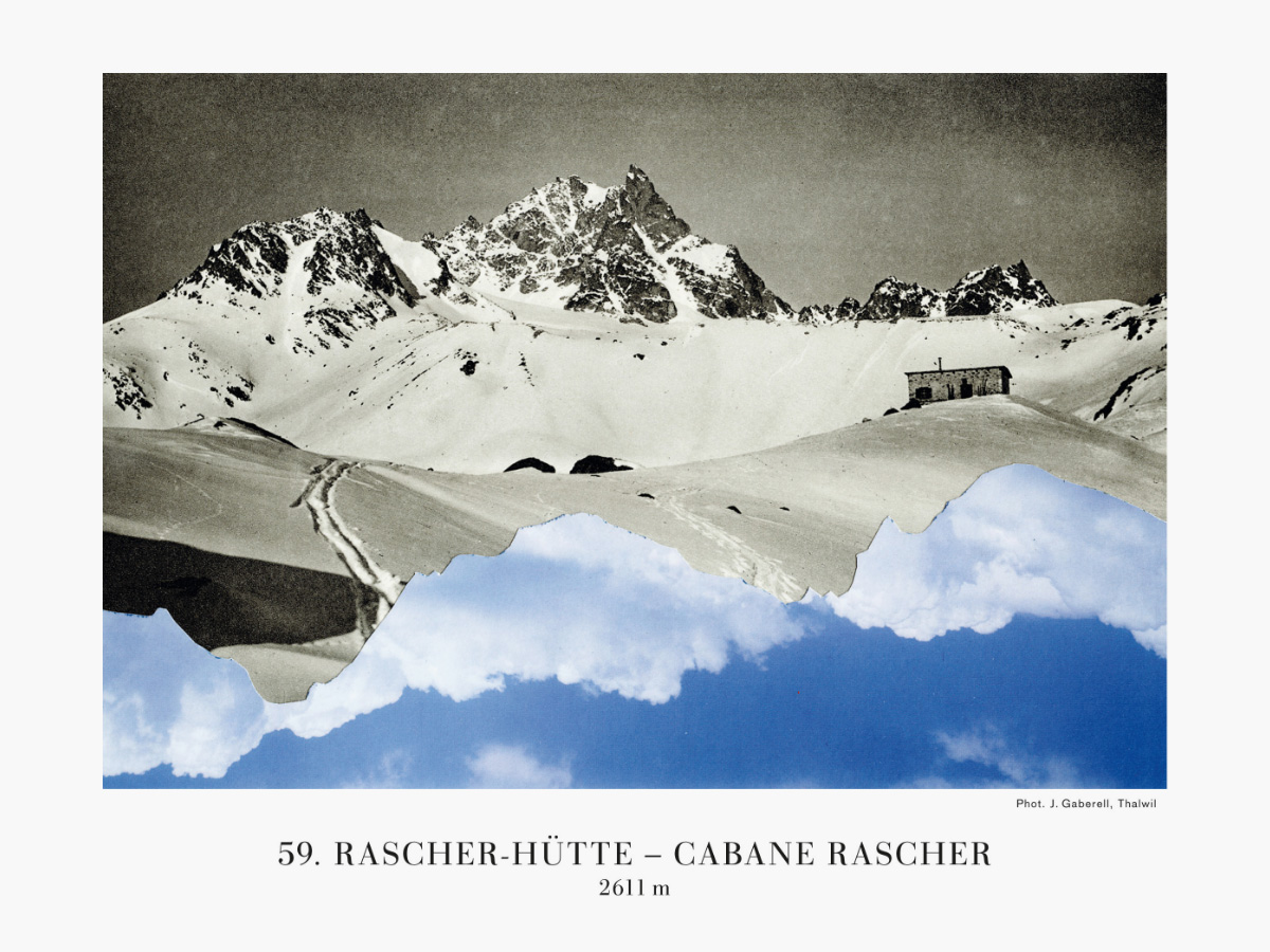 Esther Wicki-Schallberger ist Sammlerin, die aus Gefundenem Neues schafft. Dies zeigt eine aktuelle Werkgruppe mit collageartigen Eingriffen in ein Buch mit Fotografien von SAC-Hütten: „Die Clubhütten des Schweizer Alpen-Club im Jahre 1927“. Heute sorgt die neuste Generation dieser Bauwerke in den Bergen für Aufsehen ihrer zeitgenössischen Architektur wegen. Da mutet das Zitat aus dem Vorwort des Werks direkt prophetisch an: „Die rasch fortschreitende Entwicklung auf dem Gebiete des Alpinismus lässt solche Veröffentlichungen bald alt werden; sie sollen den Bedürfnissen der Gegenwart dienen, die Zukunft wird für die ihrigen sorgen.“