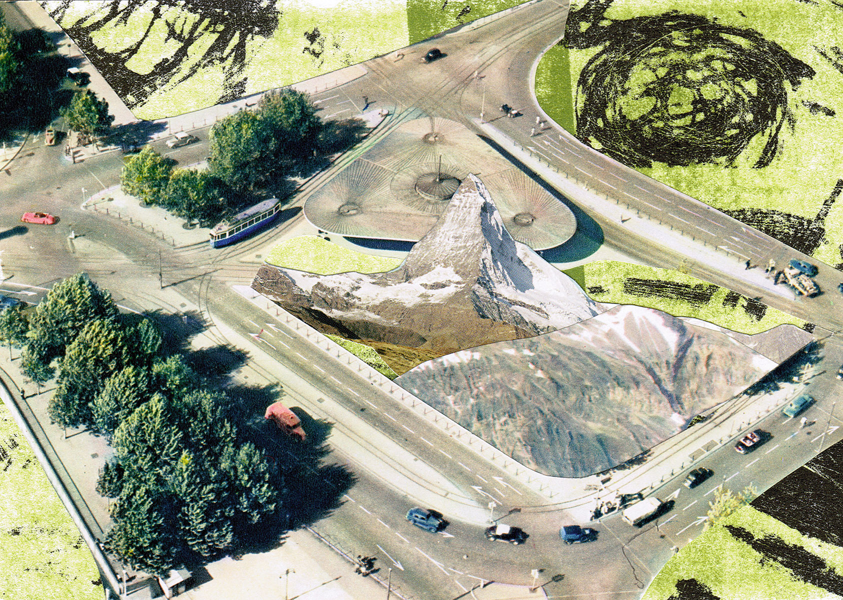 Ob Manet, Magritte, Matisse oder Pollock, ob Palazzo, Säulenhalle, Birkenhain oder Observatorium – in Wickis Alpen ist nichts unmöglich. Hier wirken Filmkulissen, Minimalart-Eingriffe oder monumentale Überhöhung; die meist menschenleeren Szenerien versetzen uns in Tschechows Russland, in die amerikanische Grossstadt, ins herrrschaftliche Italien, auf Frankreichs Auen oder ins Römische Reich. Ihre Collagen geben den Anstoss, das vermeintlich Vertraute immer wieder mit neuen Augen zu betrachten, die Vergangenheit nicht nur wissenschaftlich seriös, sondern auch verspielt und intuitiv anzugehen, die Grenzen von Zeit und Raum zu überschreiten und Touren im Kopf zu unternehmen und so zu neuen Zielen nicht nur im Alpenraum zu gelangen. Auf „dass es sie (die Clubkameraden) zu weiteren Fahrten in Gebiete, die ihnen bis anhin vielleicht noch unbekannt geblieben sind, anrege“, wie es bereits seinerzeit in der Einleitung zum Album von den Herausgebern gewünscht wurde.